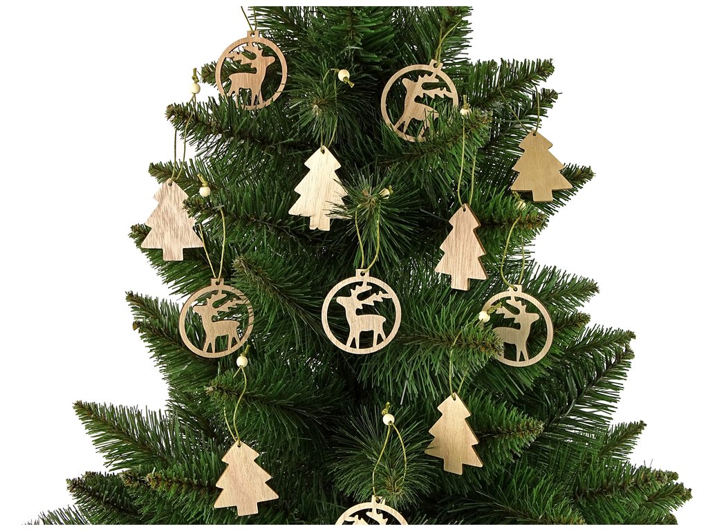 Představujeme 12 dekorací ve tvaru vánočního stromku a sobů. Díky provázku, který je k výrobku přiložen, je můžete zavěsit na vánoční stromeček.