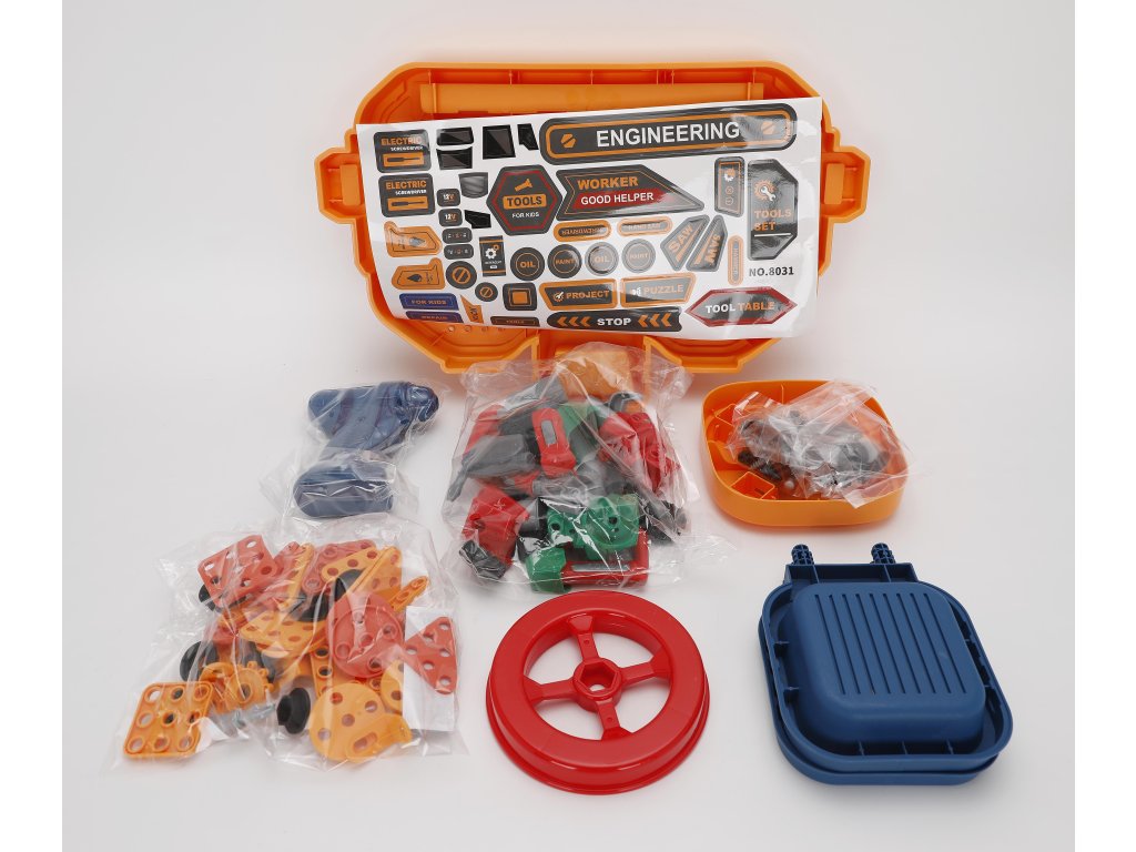 Pokud vaše dítě rádo pomáhá tatínkovi s kutilstvím, bude pro něj tato sada ideální. Sada je vyrobena z vysoce kvalitních materiálů a obsahuje 181 dílů. Vaše dítě si může sestavit kutilský stolek/dílnu a uspořádat na něm veškeré nářadí potřebné pro práci. Vrtačka je napájena 2 x 1,5V AA bateriemi (nejsou součástí balení) a lze ji použít k šroubování a vyšroubování šroubů.