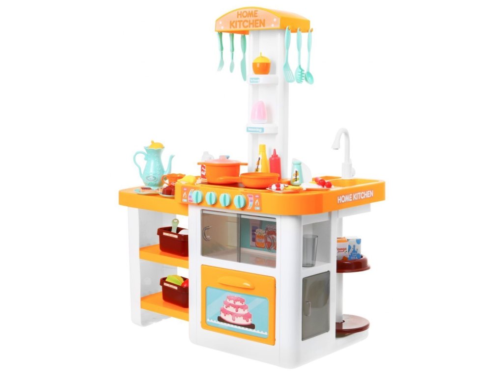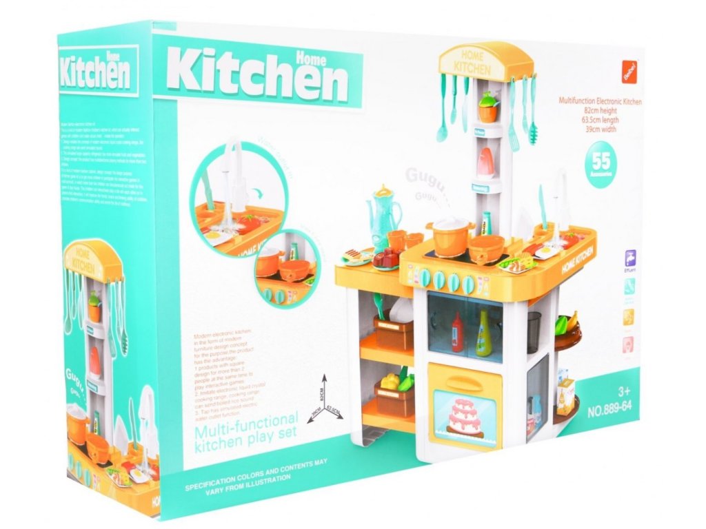 Představujeme Vám senzační, dobře vybavenou kuchyň pro malé kuchaře a kuchařky. Kuchyně má otevíratelnou troubu, 4 hořáky se zvuky a světly a umyvadlo s kohoutkem, ze kterého letí skutečná voda. V sadě se nachází kompletní nádobí a potraviny. Kuchyně je vybavena policemi a háčky pro kuchyňské doplňky. Kuchyň má vynikající zpracování a živé barvy. Celý soubor se skládá ze 46 prvků. Kuchyňka byla velice pečlivě vyrobená z kvalitního plastu. Vhodná věková kategorie od 3+ let. Výrobek má evropský certifikát bezpečnosti CE.