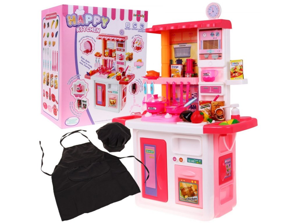 Hořáky jsou osvětlené a vydávají zvuky vaření a smažení. Sada obsahuje kuchařský klobouk a zástěru, takže se vaše dítě cítí jako skutečný kuchař.