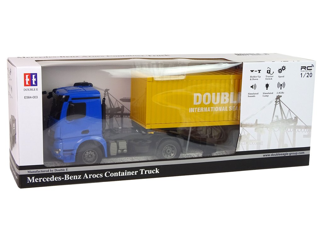 Licencovaný nákladní automobil se hodí pro přepravu různých předmětů nebo hraček. Během práce vydává realistické zvuky. Nezbytný všude tam, kde je třeba dopravit těžký náklad a nejrůznější prvky na stavbu. Dálkové ovládání pracuje na frekvenci 2,4 GHz.