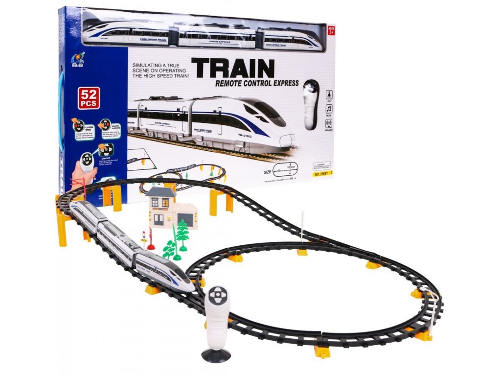 Vláčkodráha pro děti od 3 let se zvukovými efekty a dálkovým ovládáním. Postavte si vlastní dráhu pro vláček a staňte se tím nejlepším strojvůdcem! Vláček se ovládá dálkovým ovladačem k vláčkodráze je přidáno i okolí pro nabuzení správné atmosféry. Vhodná věková kategorie je 3+.
