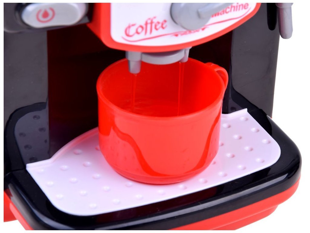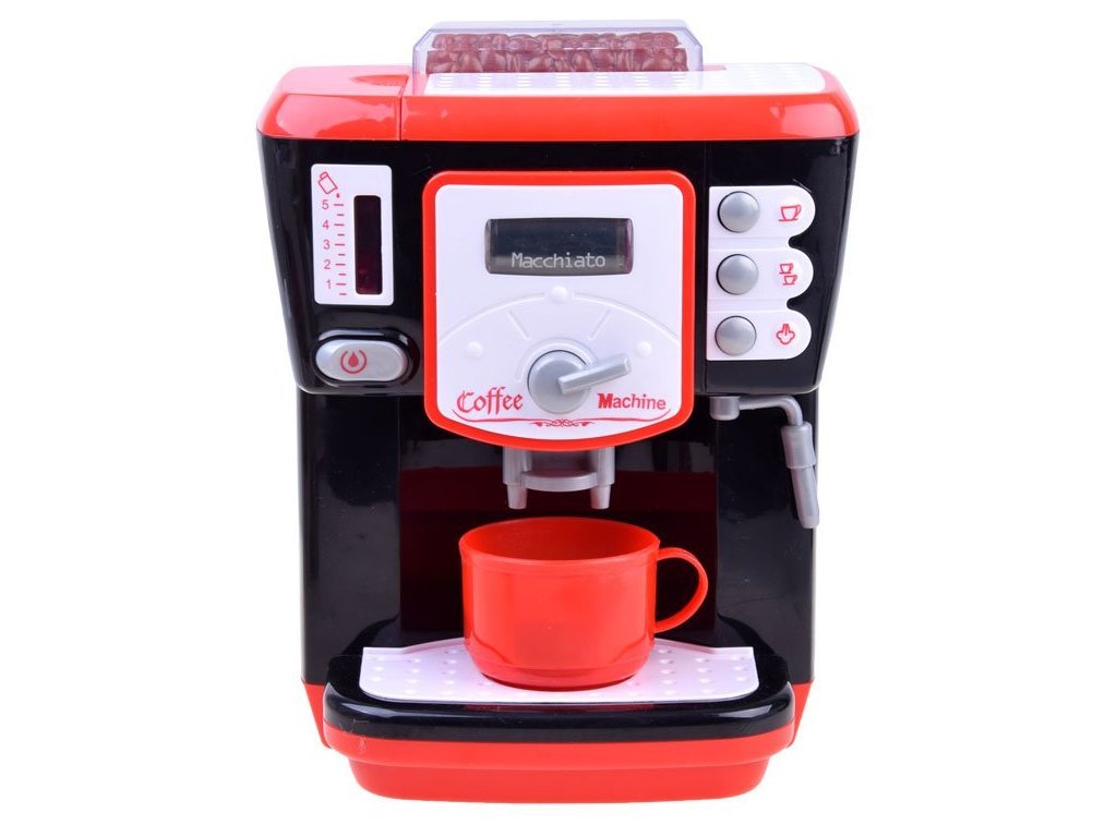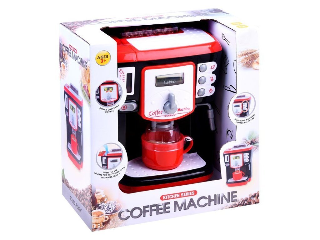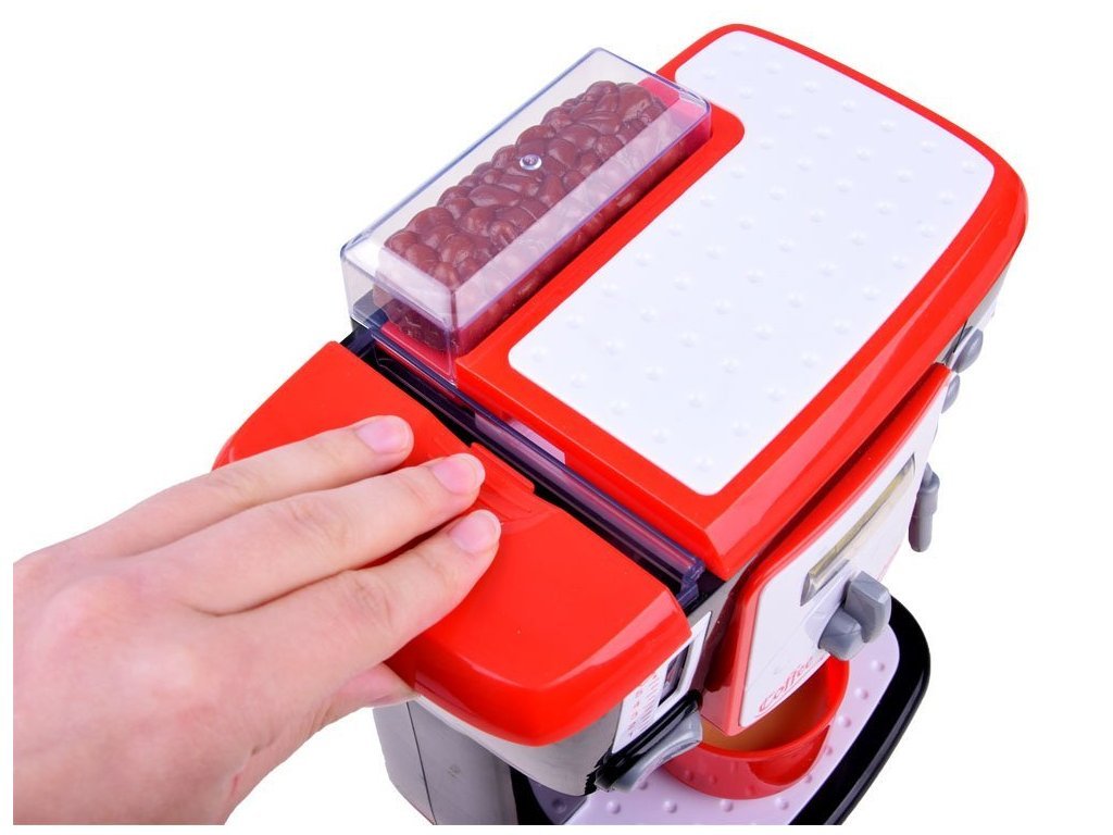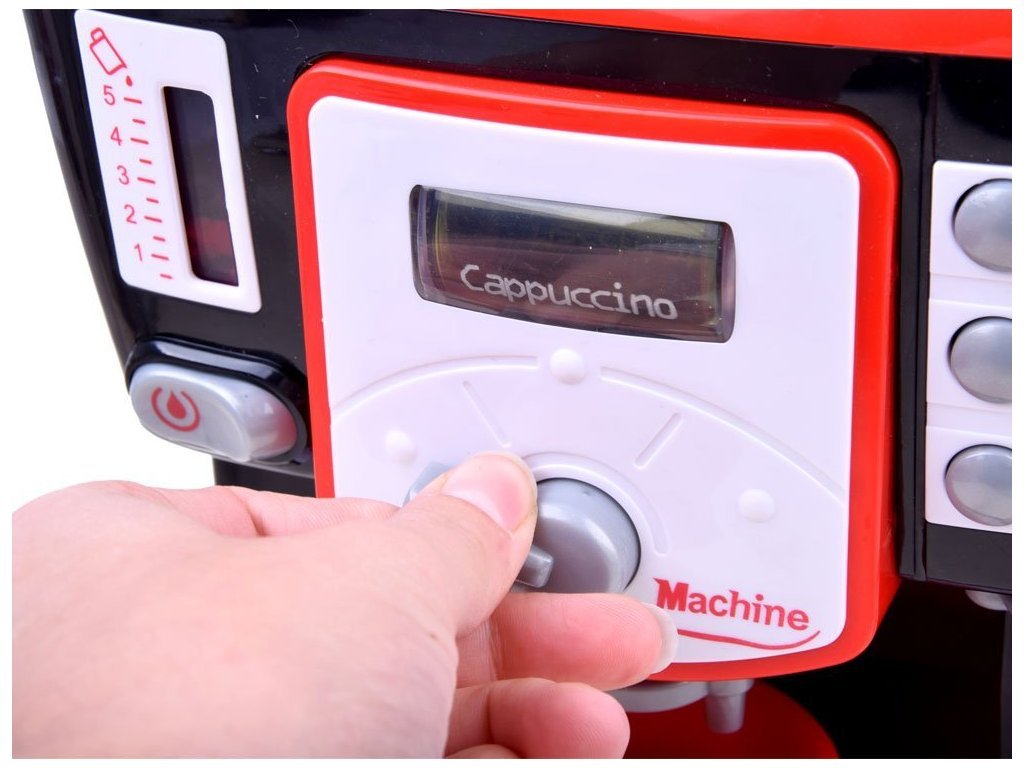 Hračka má schopnost nalít vodu s funkcí nalití do džbánu. Po zapnutí knoflíku na stroji můžeme změnit typ připravené kávy na Macchiato, Latte nebo Cappuccino, jak ukazuje podsvícený nápis. Na boku kávovaru jsou také knoflíky, které vám umožňují zvolit velikost šálku nebo napěňovacího mléka. Můžete si připravit kávu přesně jako máma nebo táta.
