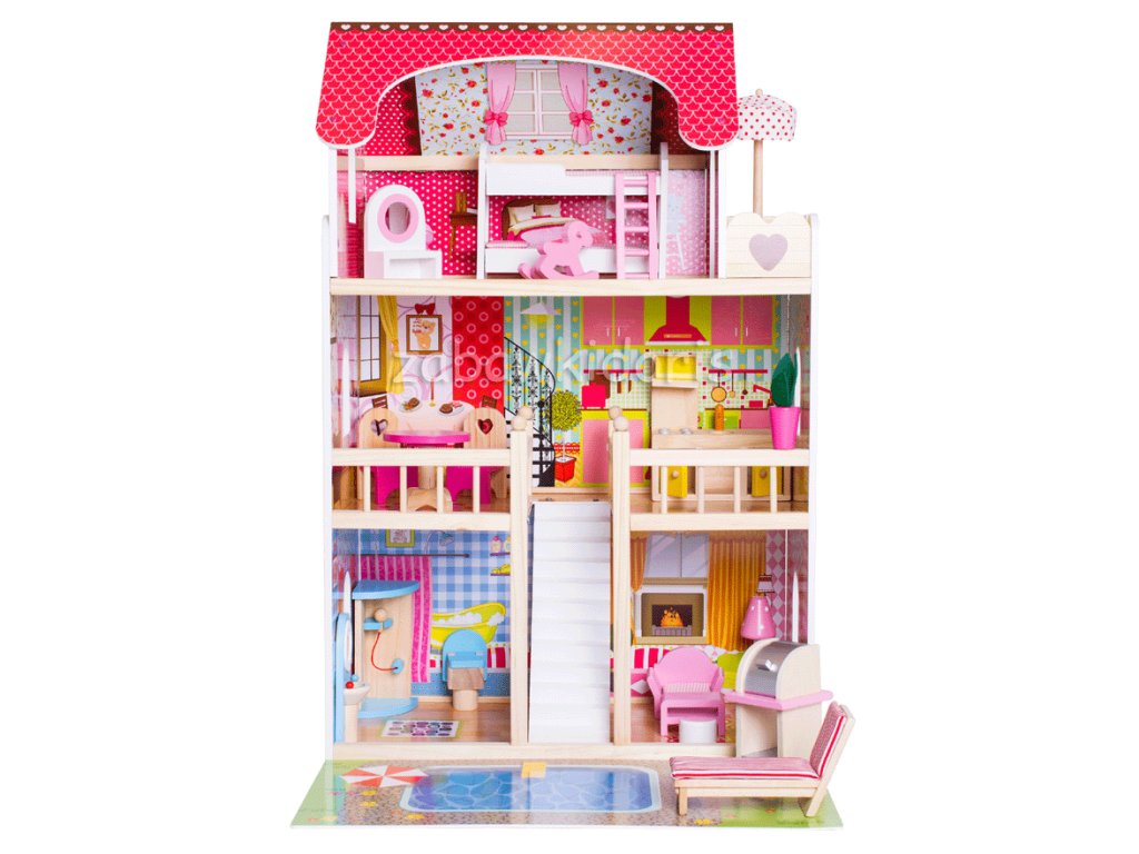 Rozměry domečku pro panenky: 90 x 60 x 30 cm, vzdálenost mezi podlahami: 26 cm.