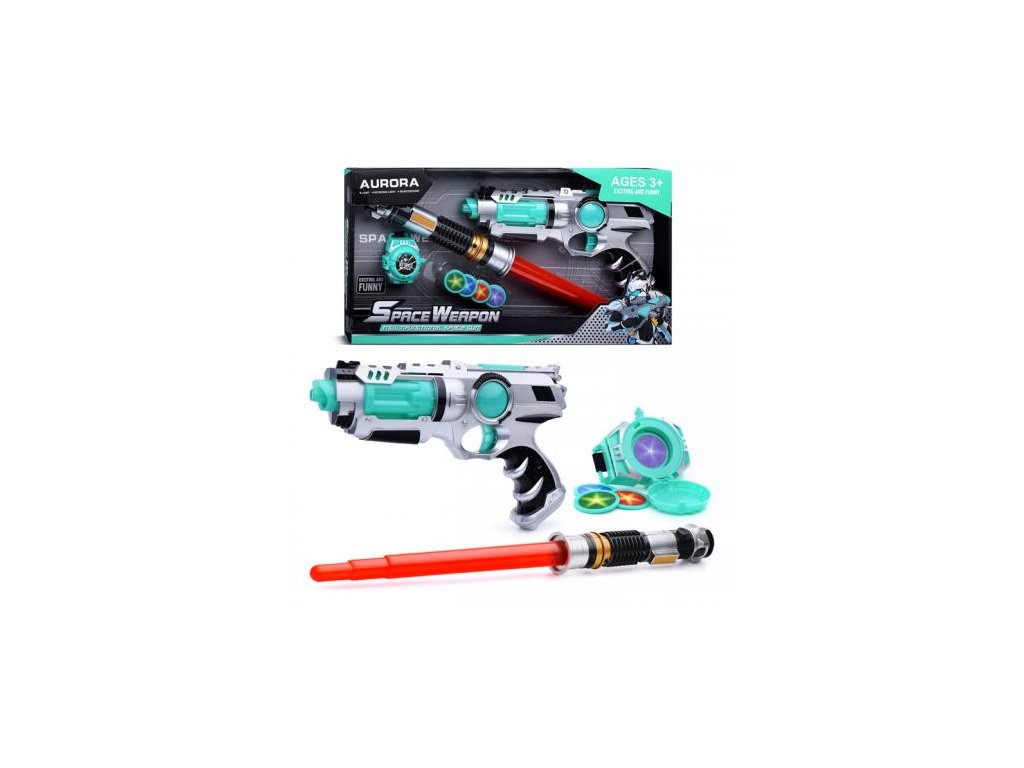 Vesmírná sada - 3v1 laserová pistole, světelný meč a vrhač disku