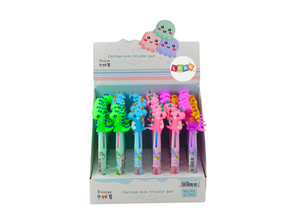 Tato multifunkční propiska s motivem dinosaura kombinuje zábavu s praktičností. Díky snadnému přepínání barev umožňuje rychlé střídání pro kreslení nebo psaní, což dětem usnadňuje a zpříjemňuje práci. Dinosaurus na těle propisky dodává každodenním činnostem kouzlo, a zároveň povzbuzuje zájem o psaní a kreativitu.