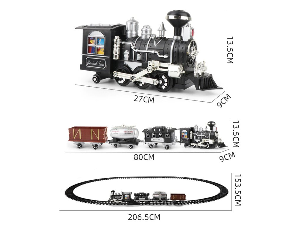 Obvod celé dráhy je přes 206,5 cm. Výhodou jsou zvukové efekty hračky, zvuky jízdy vlaku a předního světla. Vše lze ovládat přiloženým dálkovým ovladačem s frekvencí 27 MHz. Díky ní můžete zvýšit rychlost, jezdit s vlakem dopředu a dozadu a také zapnout zvukový signál vlaku.