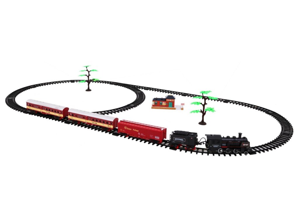 Zažijte atmosféru skutečné železnice s touto detailně propracovanou vláčkodráhou, která přináší dětem realistický zážitek z jízdy. Trasa je postavena do tvaru elipsy o rozměrech 78 × 156 cm a obsahuje dva funkční přepínače. Během jízdy lokomotiva nejen vydává světelné efekty, ale také uvolňuje kouř z komína, což zvyšuje autentičnost celé hry. Koleje se spojují snadným a pevným způsobem, takže jsou stabilní, odolné a bezpečné pro děti.