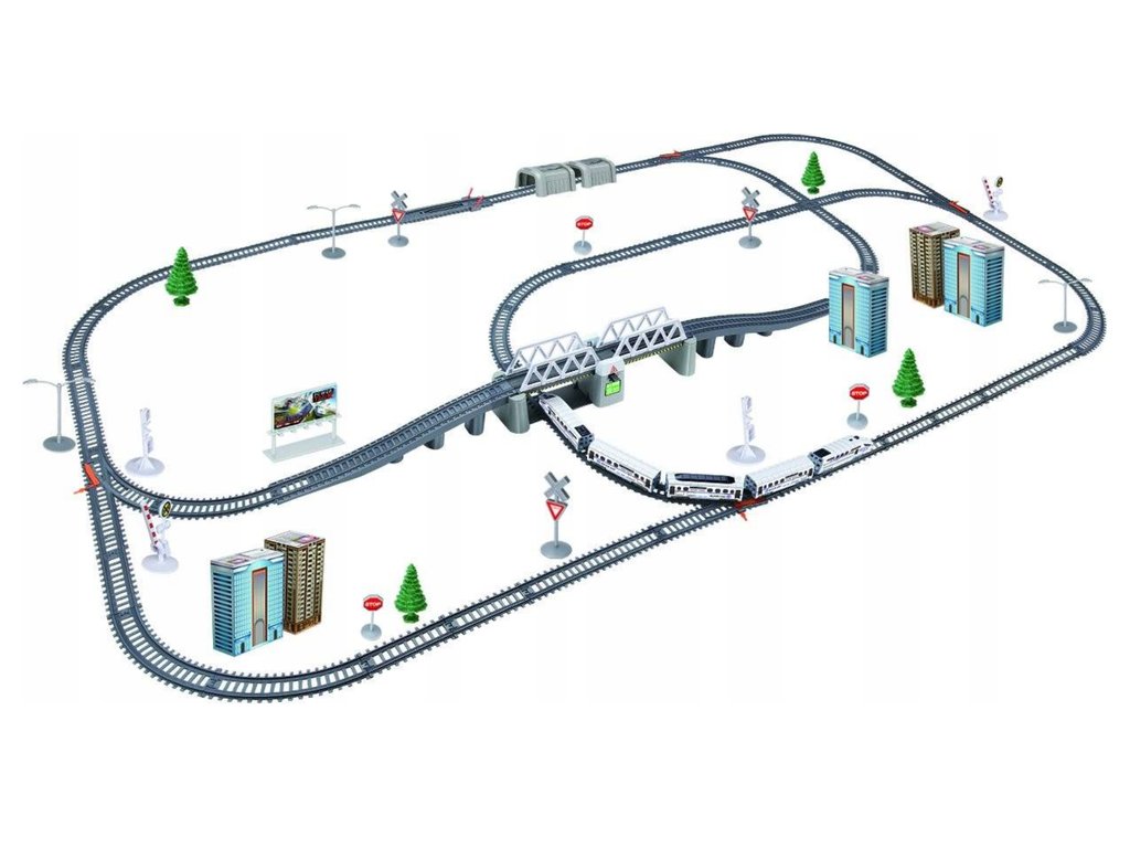 Stavebnice železnice obsahuje fantastický sortiment kolejí, stavebních bloků a příslušenství. Patří mezi ně rovné a zakřivené koleje, stromy, dopravní značky. Můžete si postavit obrovské město.