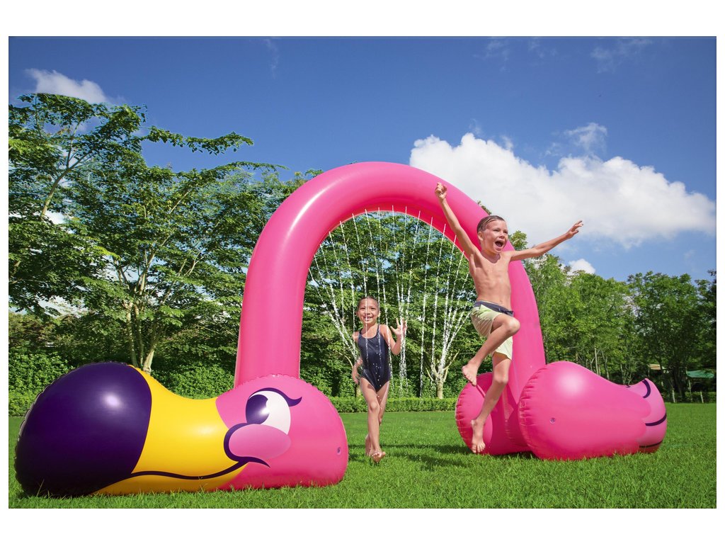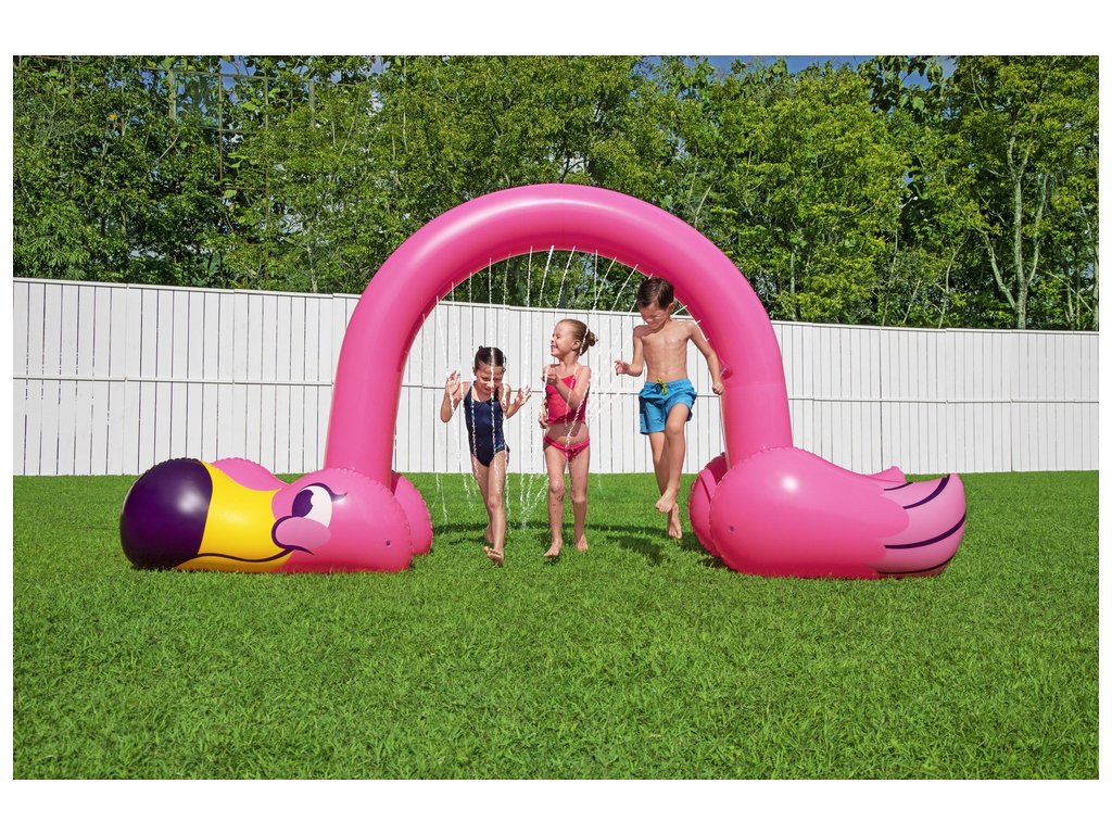 Vodní fontána plameňák funguje jako velká nafukovací stříkací brána s motivem plameňáka s kreativními prvky umožní dětem prozkoumat a zapojit svou představivost při outdoorových aktivitách a hře. Nyní můžete zapomenout na nudné postřikovače. Sledujte, jak se představivost vašich dětí vznáší, když běží pod obřím plameňákem a jsou postříkány zábavnými postřikovači uvnitř postřikovače.