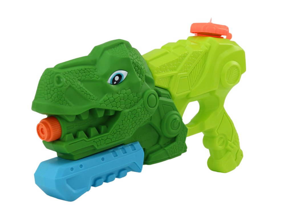 Dinosaur se svým charakteristickým chrupem a čelistí vzbudí hrůzu u soupeře. Pumpovaním rukojeti, voda ze zásobníku vystříkne čelistí dinosaura. Zásobník pojme přibližně 1000 ml vody. Pistole je zelená s oranžovými prvky.