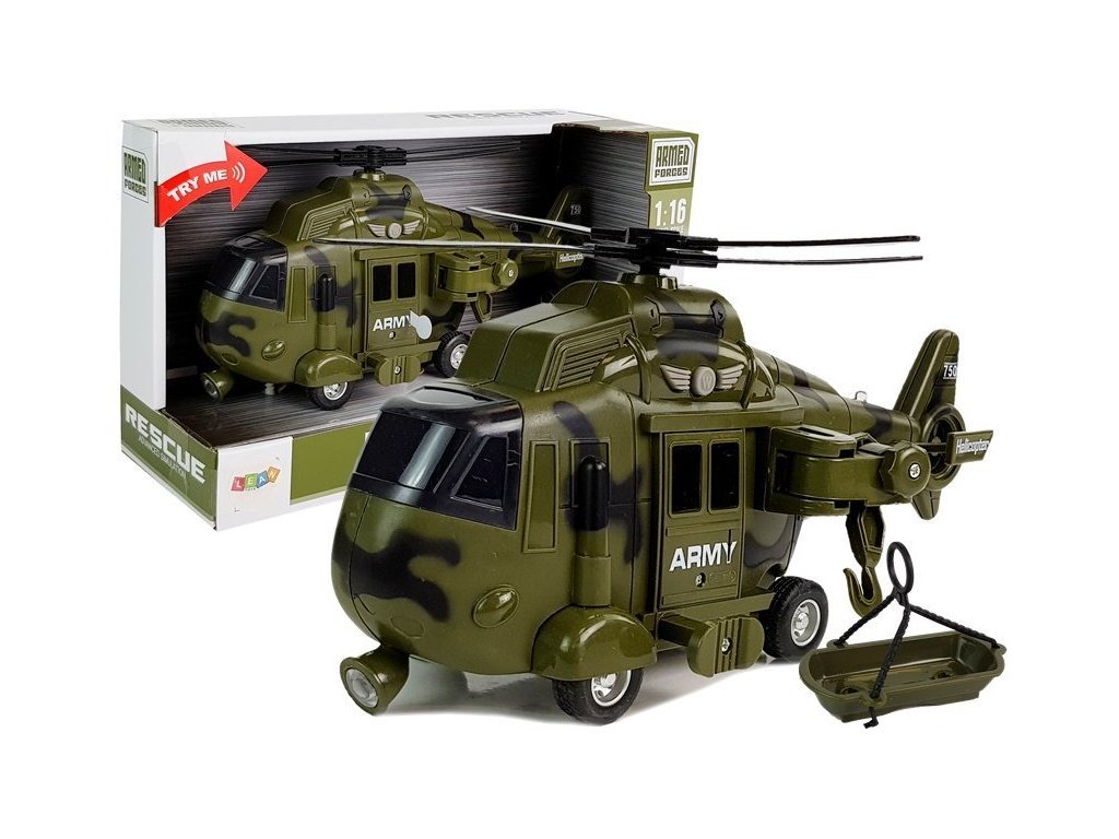 Vojenský záchranný vrtulník 1:16 s efekty