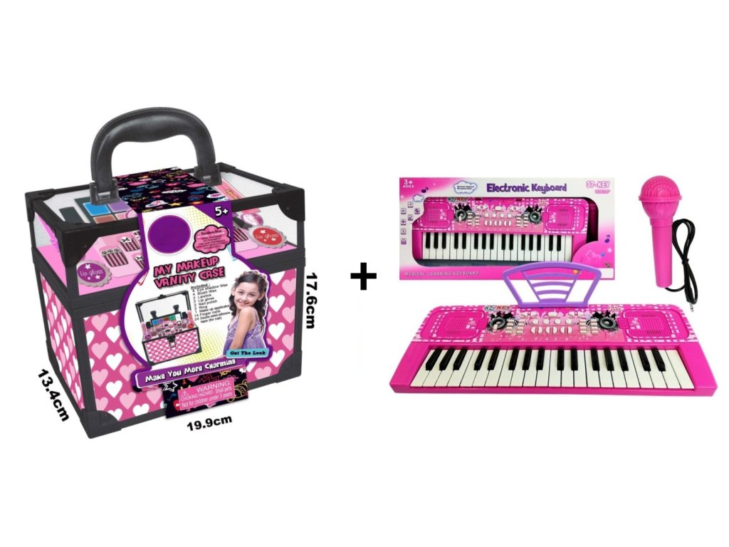 Výhodná sada Dětský kosmetický kufřík + Velký keyboard s mikrofonem růžový 37 kláves