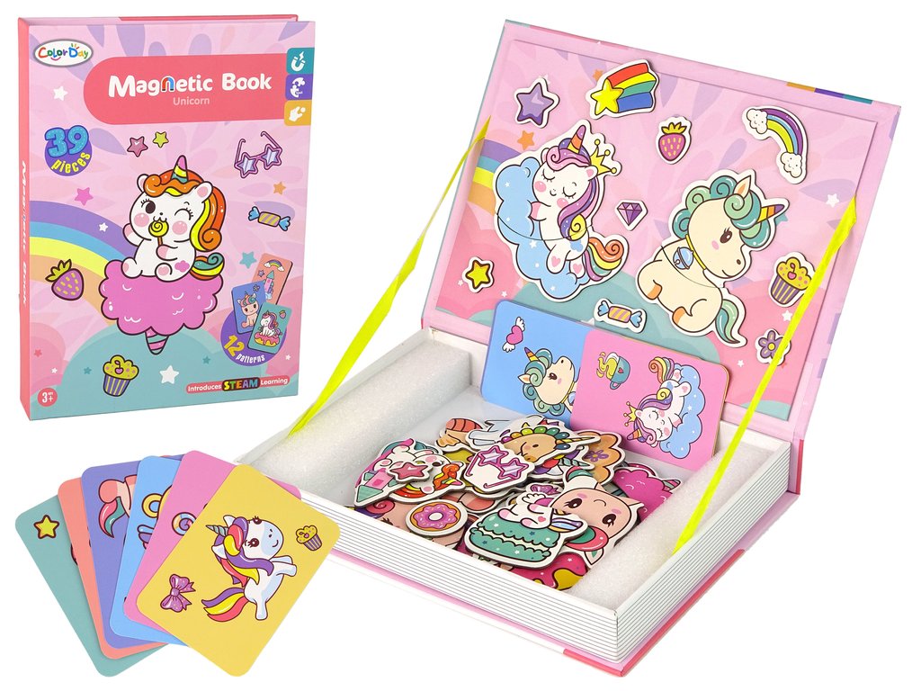 Vzdělávací magnetické puzzle v knize Jednorožci