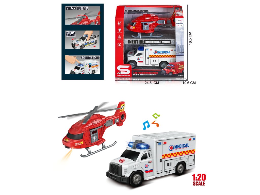 Akční záchranářská sada v měřítku 1:20 je perfektní hračkou pro všechny malé hrdiny. Balení obsahuje sanitku se světelnými a zvukovými efekty a červený záchranářský vrtulník s pohyblivou vrtulí. Sanitka jezdí na setrvačník, díky čemuž se snadno ovládá a realisticky simuluje jízdu. Kombinace sanitky a vrtulníku umožňuje dětem vytvářet napínavé záchranné akce a rozvíjí jejich kreativitu i představivost. Hračka podporuje rozvoj motorických dovedností, fantazie i týmové spolupráce při společné hře.