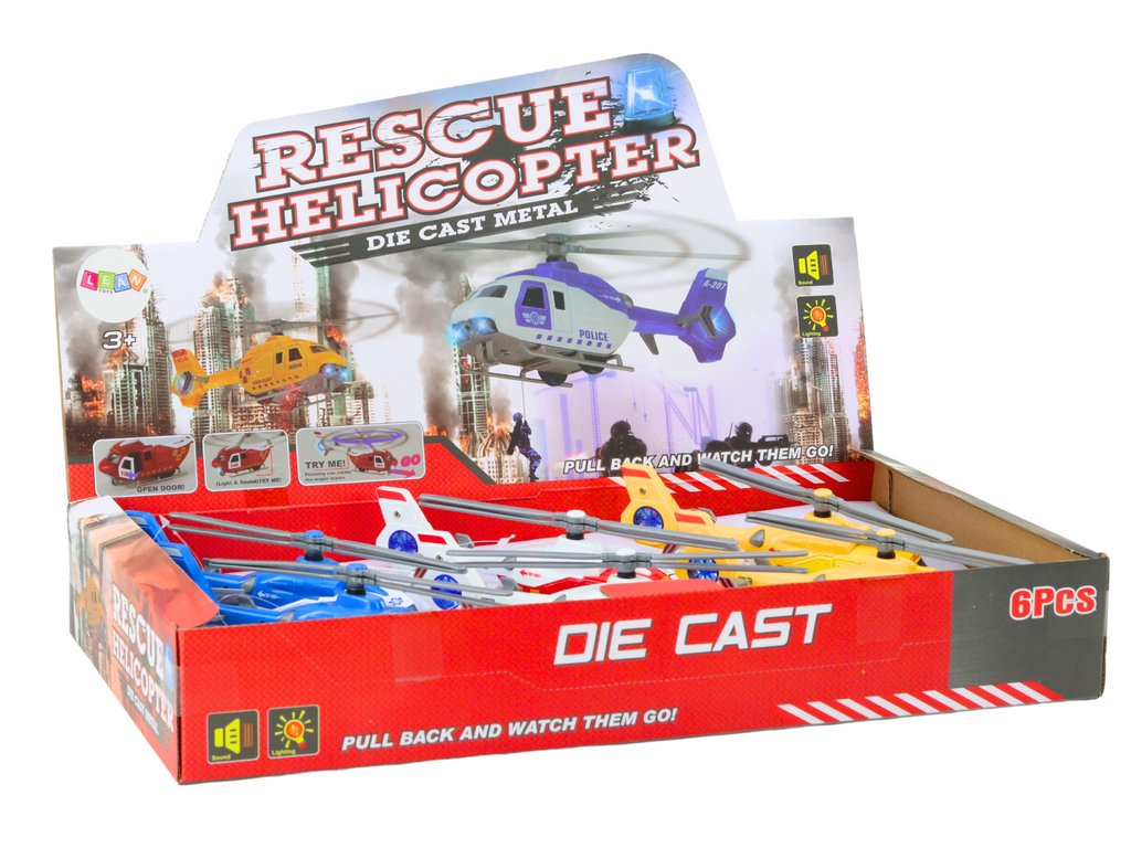 Záchranná kovová helikoptéra s otevíracími dveřmi 3 druhy