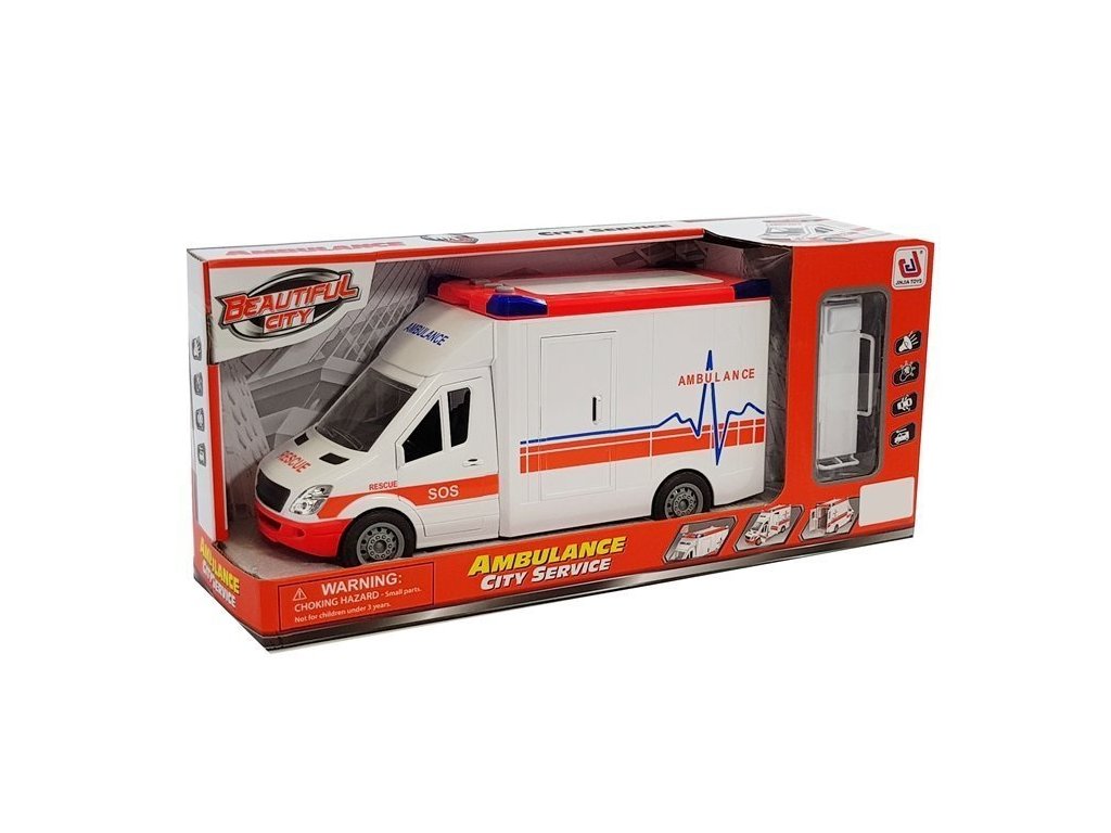 Záchranná sanitka s nosítky, světly a zvuky bílá