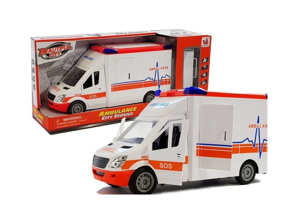 Tato dětská sanitka na baterie nadchne všechny malé záchranáře. Díky detailnímu provedení interiéru i exteriéru, otevíracím dveřím, odnímatelné střeše a funkčním nosítkům nabízí reálný zážitek ze záchranných zásahů. Efektní světla a zvuky aktivované tlačítky na střeše přidávají na autenticitě. Díky systému power friction je sanitka poháněna setrvačníkem – stačí zatlačit a jede. Vhodná jako dárek, hračka je bezpečná, lehká a vybavená gumovými koly pro hladkou jízdu.