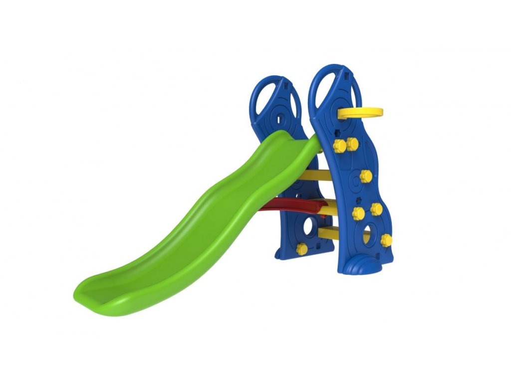 Zahradní skluzavka s basketbalovým košem a míčem, která se hodí jak na zahradu tak i na doma. Konstrukce přizpůsobená malým dětem, protiskluzové schody a možnost přidržení se bočních stranách konstrukce což umožní dětem bezpečně vylézt na skluzavku. Kvalitní zpracování s důrazem na detail a bezpečnost, vyrobeno z pevného a odolného plastu. Vhodná věková kategorie od 1 roku. Výrobek má evropský cetifikát bezpečnosti CE.