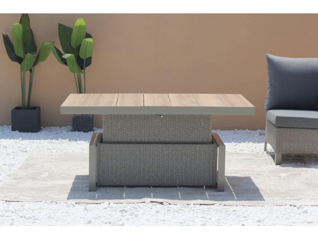 Zahradní nábytek ratanový s regulovatelným stolem béžový
