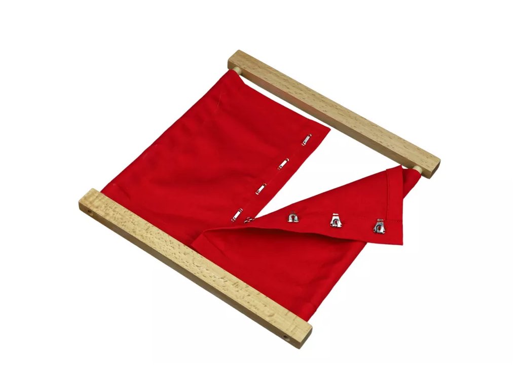 Zapínací rám – háček a očko je pomůcka z oblasti Montessori praktického života, zaměřená na nácvik péče o sebe sama. Aktivita pomáhá dítěti osvojit si techniku zapínání a rozepínání, zlepšuje jemnou motoriku a podporuje samostatnost při oblékání.