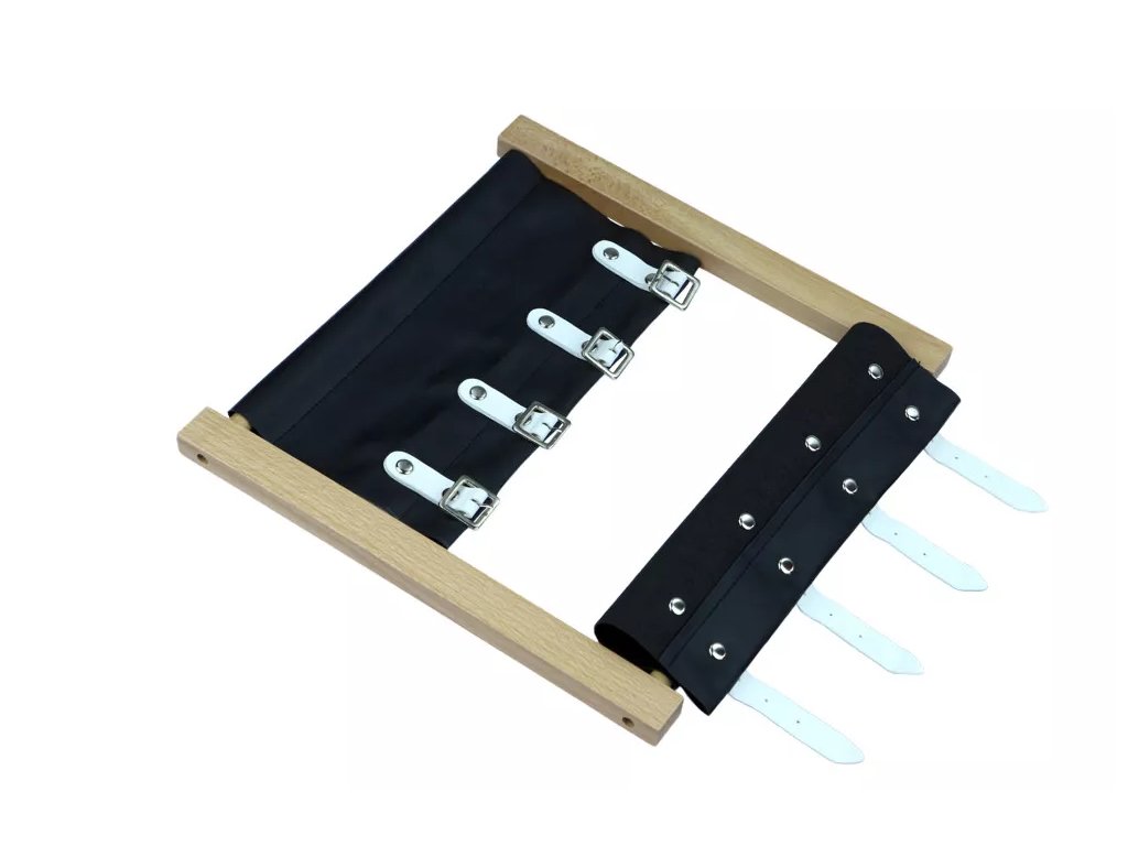 Zapínací rám s páskem a přezkou je pomůcka z oblasti Montessori praktického života, zaměřená na nácvik samostatnosti při oblékání a jemné motoriky.