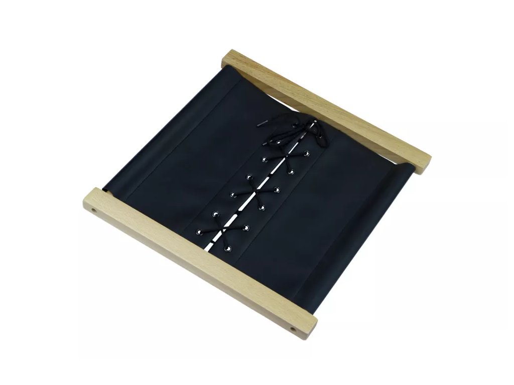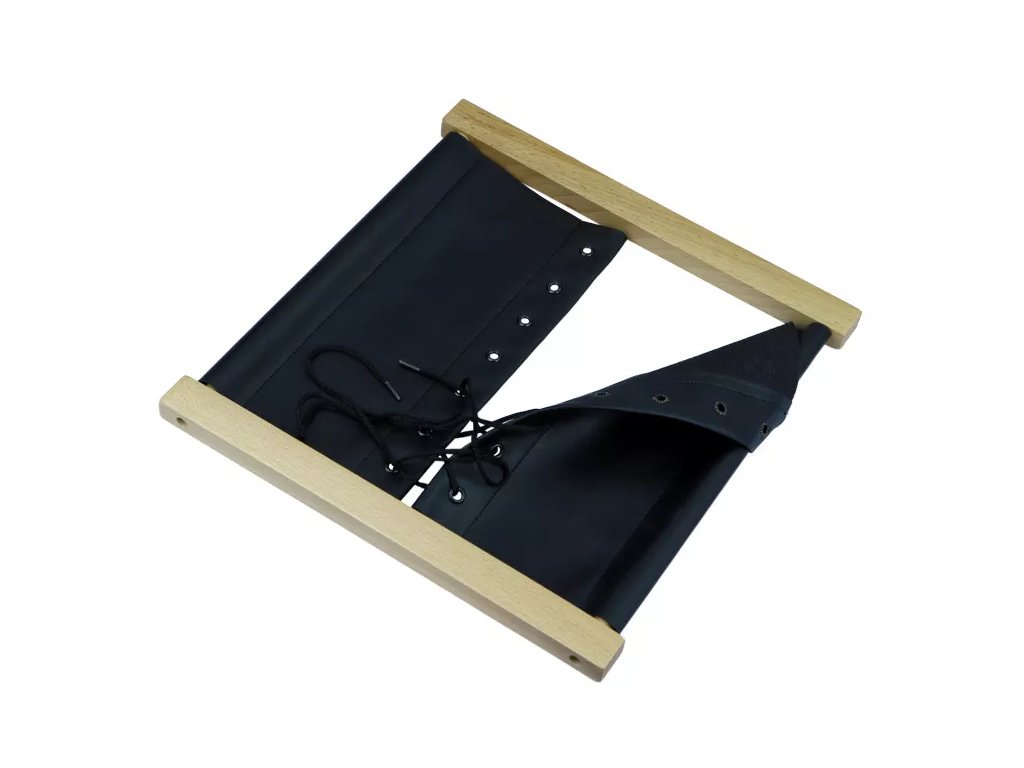 Rám je vyroben ze dřeva, součástí je textilní plocha s vloženými průvleky a párem tkaniček. Konstrukce umožňuje opakované vázání a rozvazování bez nutnosti manipulace s obuví.