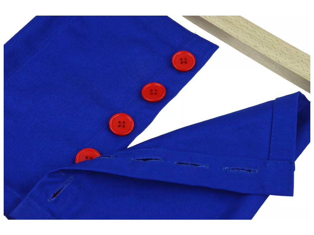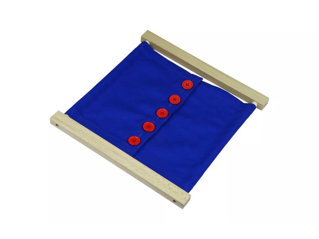Praktická pomůcka z oblasti Montessori pro rozvoj sebeobsluhy u dětí. Umožňuje osvojit si dovednost zapínání knoflíků a přenést ji do každodenního života.