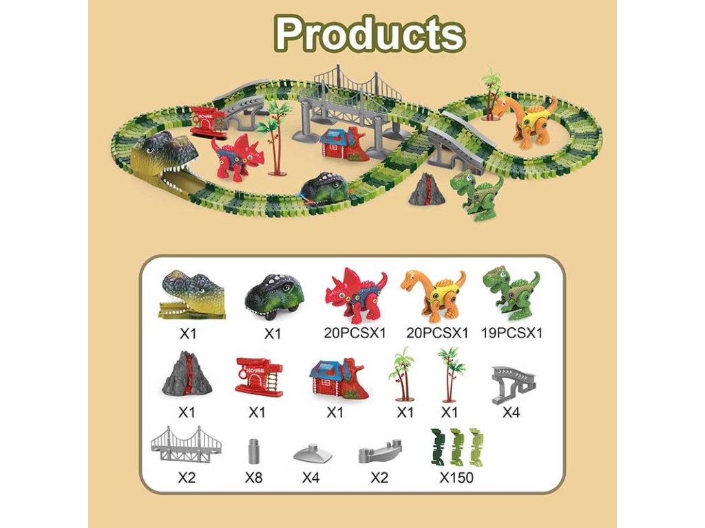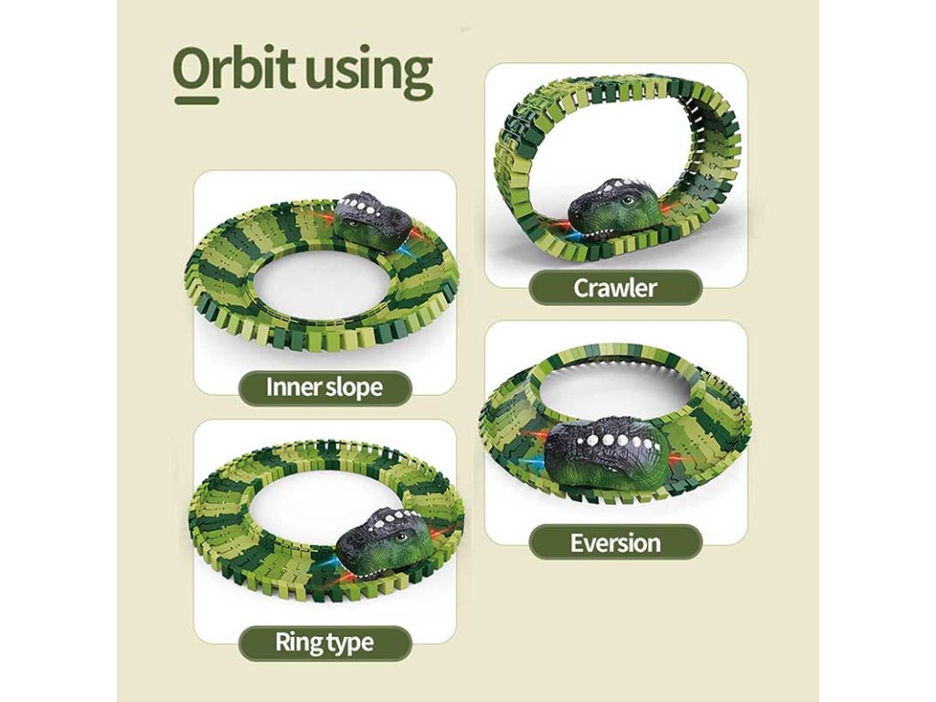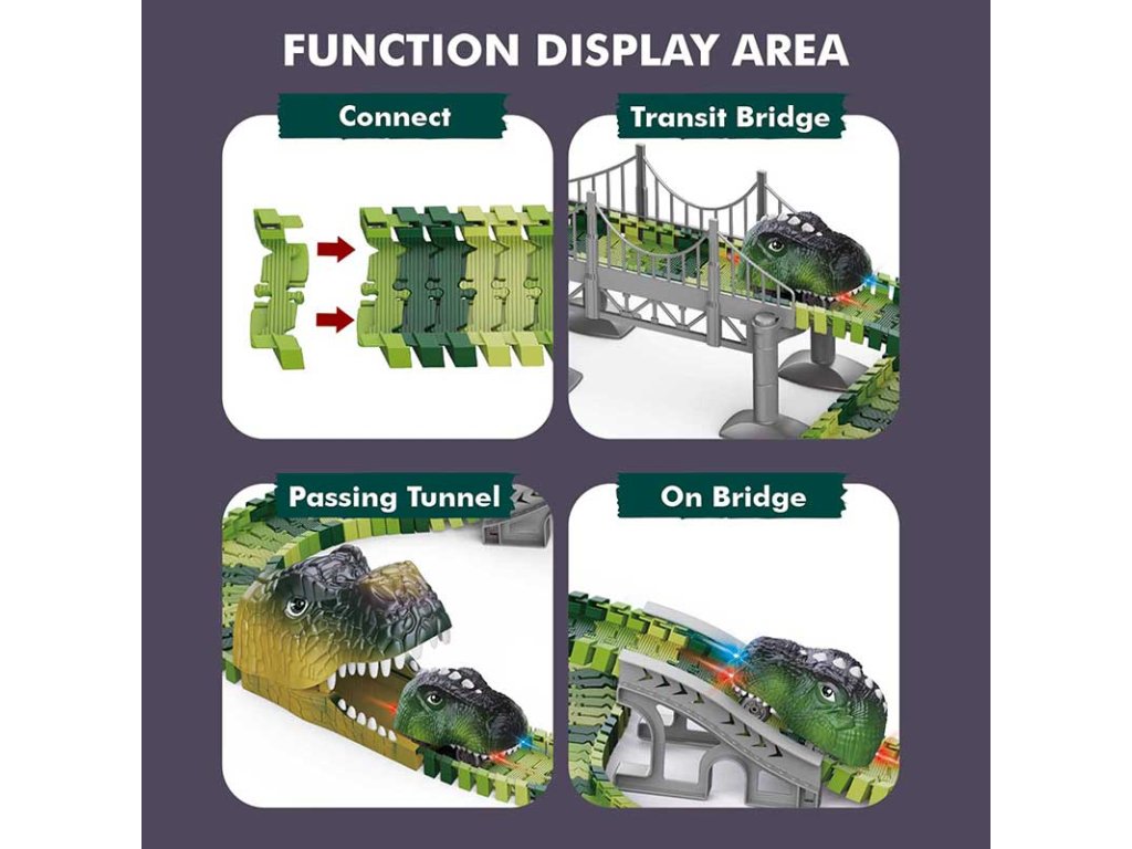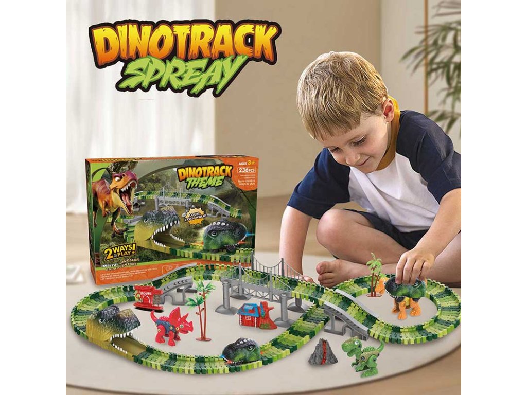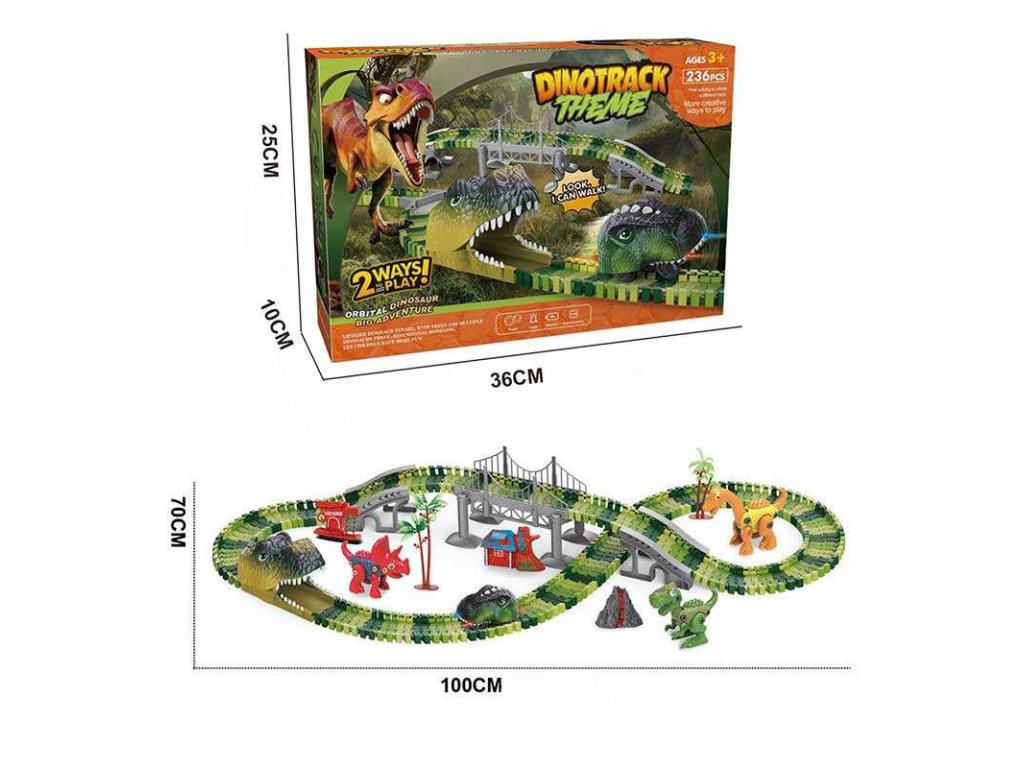 Darujte svým dětem neomezené možnosti hraní a nechte je prozkoumat fascinující svět dinosaurů s touto úžasnou závodní dráhou!