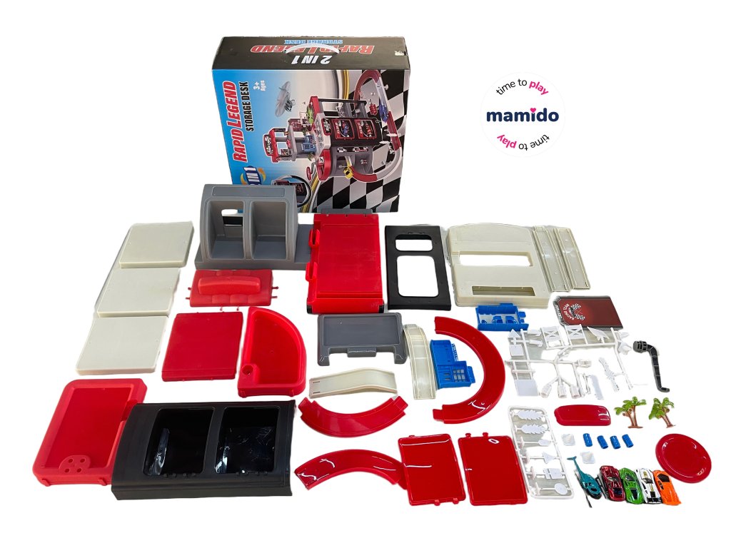 Akční závodní set, který kombinuje garáž s dráhou a přenosný kufřík na kolečkách! Děti si mohou užít napínavé závody, víceúrovňové parkování, rychlé sjezdy i opravárenskou stanici – a po hře vše jednoduše složit a vzít s sebou.