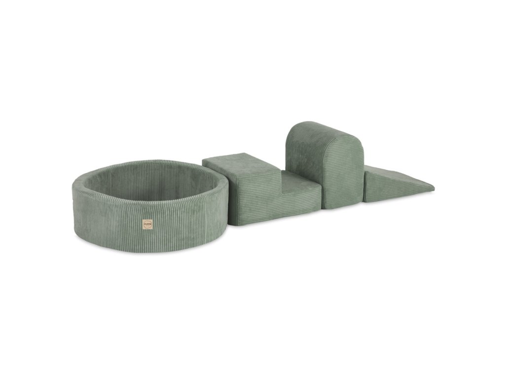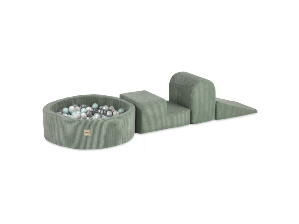 Zelená hrací sestava s bazénem (3 prvky + suchý bazén Ø 90 × 30 cm) a 200 míčky