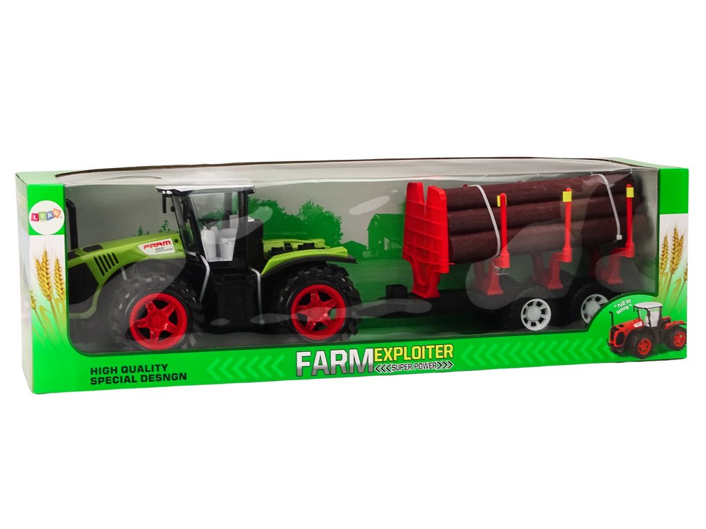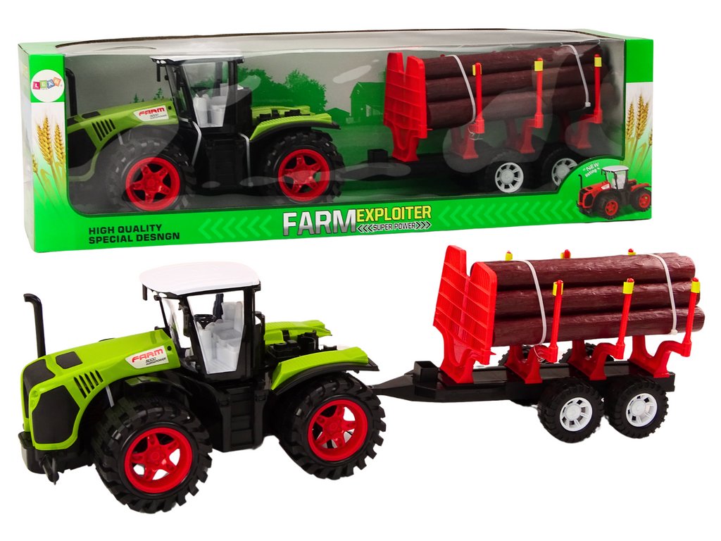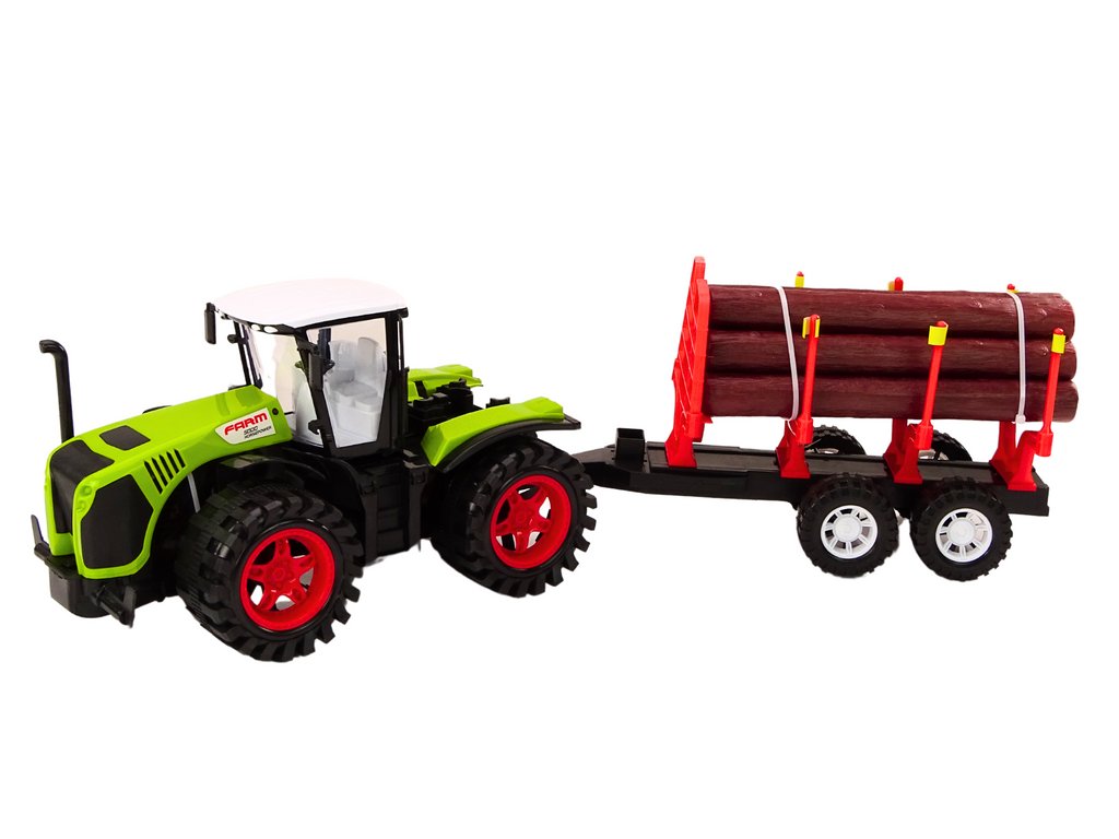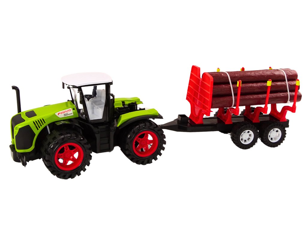 Farmářský traktor s přívěsem na dřevo 9 polen dřeva pohon zelená