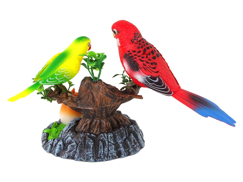 Tato okouzlující a interaktivní hračka přenáší děti do světa přírody. V sadě najdeme dva papoušky (červeného a žlutého), kteří sedí na větvi stromu a malého papouška ležícího pod ním. Ptáčci na větvích vydávají různé zvuky a hýbají se, malý papoušek svítí barevným světlem. K aktivaci hračky stačí stisknout černé tlačítko.
