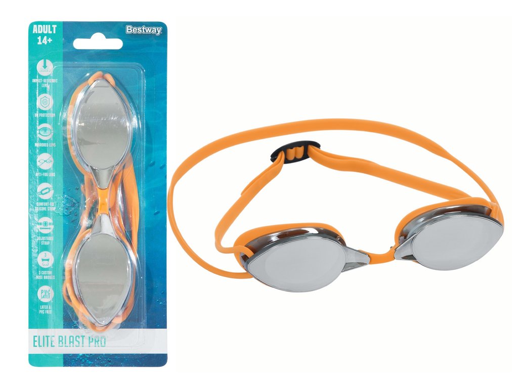 Plavecké brýle jsou vybaveny zrcadlovými, nárazuvzdornými polykarbonátovými skly s UV a antifog úpravou, která zajišťuje plnou ochranu očí při plavání. Jejich měkké, pohodlné silikonové očnice bezpečně přiléhají k obličeji a účinně zabraňují vniknutí vody.